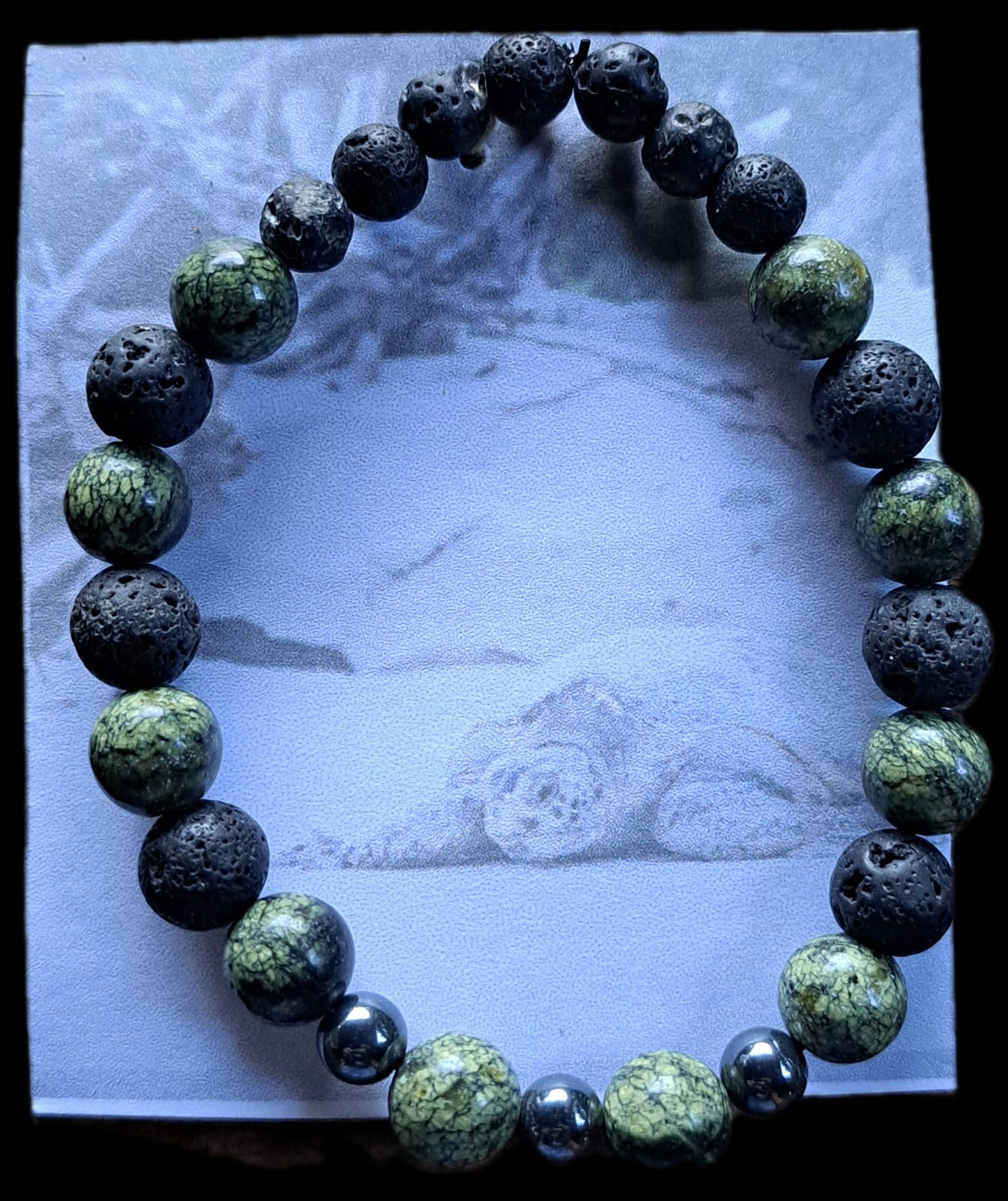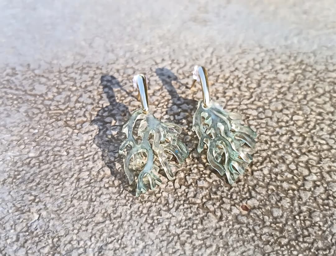 Made of volcanic stone, resin, or bone, using recycled or local raw materials.